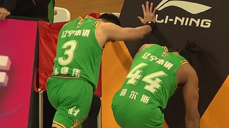 第四节对决,赵继伟的突破击地妙传助攻付豪打成2+1,然后王岚嵚抢篮板球被他的山东老乡陶汉林一巴掌拍倒在地板上为辽篮争取到球权,但是却出现失误被高诗岩反击上篮打进。
