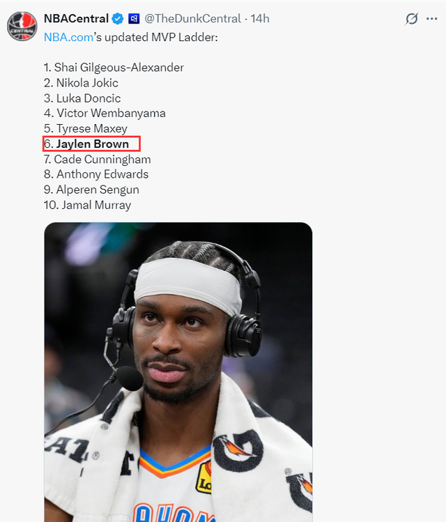 就连前NBA球员克里斯-波什也在播客节目中盛赞杰伦-布朗已经打出了MVP级别的水准。